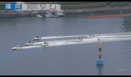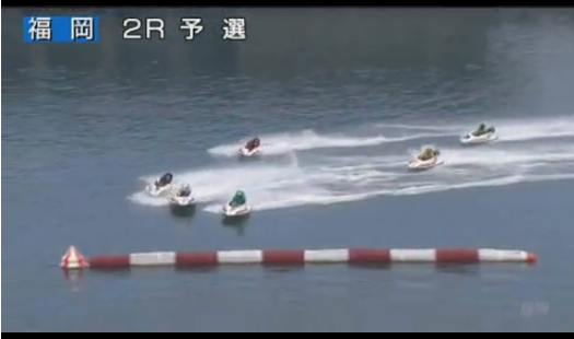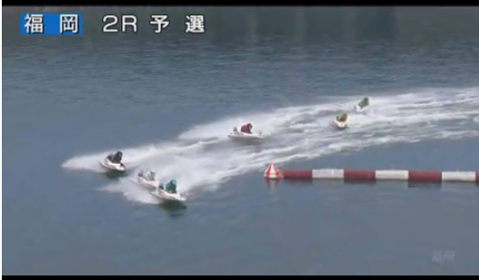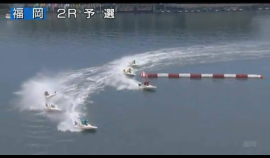 ターンマーク付近では、内々を走っていた4号艇が、意を決して攻めの旋回に出た。内から外へ向かってそのまま、ほとんど減速せずに切り込んでくるという、制動が利かなくなれば、そのままスタンドにぶつかってしまう危険すらある走法だ。