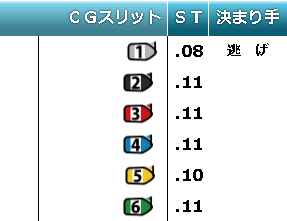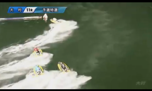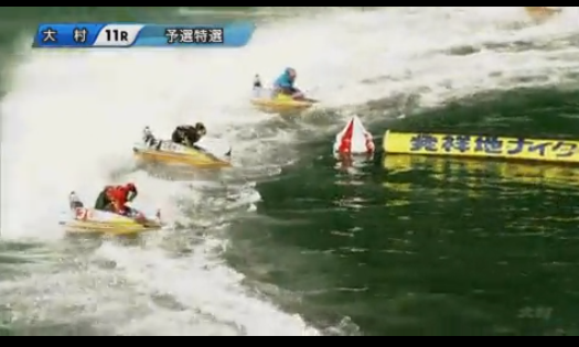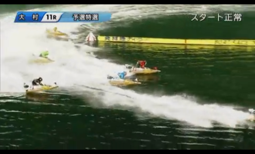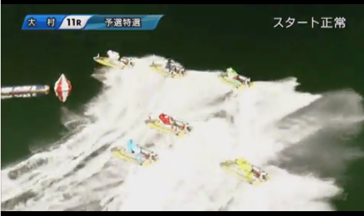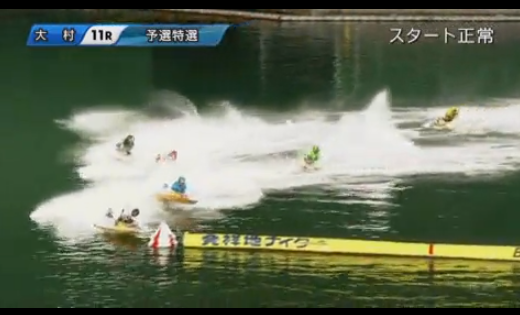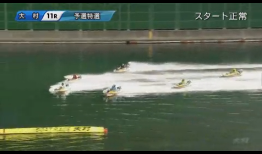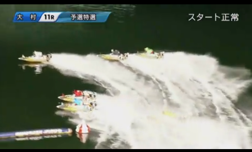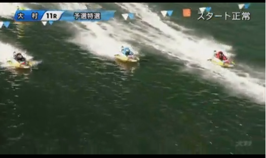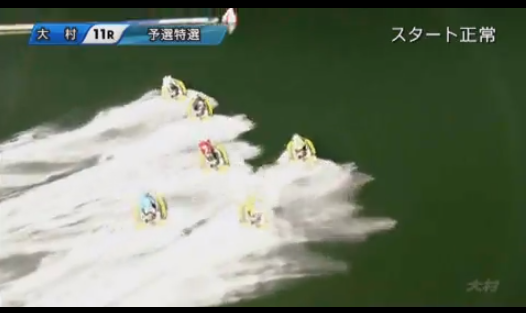スタートは全艇ほぼ横一線。僅かに1号艇の寺田選手が前に出ており、この段階で1のアタマは決まったようなものであった。