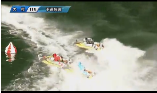 第2ターンマークを前にして、赤い3号艇は、同じ轍を踏まないよう、なるべく速度を落とさずに先行してターンに入るところ、平高選手は減速を始めたのだ。差し構えである。これが当然のごとく鮮やかに決まってしまうのだった。