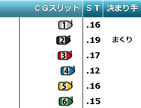 本番は上の通りであった。まずは白石有選手の健闘を褒めたい。無難に決めてくれている。そしてF持ち勢はやはりそれほど前に出なかったが、5、6号艇のスタートがそこそこ良いのは、4号艇中北涼選手のスタートが良かったせいであろう。奴の後ろなら大丈夫だ、と判断して斜め後ろを追走した結果の、.16、.15であった。