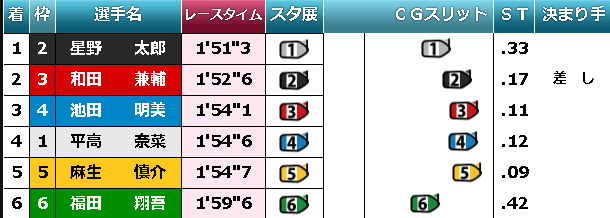 こんなことがあって良いのだろうか。.33のスロースタートとなれば、万事休すもいいところだ。この後にそれぞれ別の準優勝戦に出場する予定があった3号艇と5号艇は、共にまともなスタートを切っているのである。きっちり勝負しているのだ。それを、たくさんの人気を背負った1号艇が.33とは、いくらなんでもファンに対してドS過ぎる。