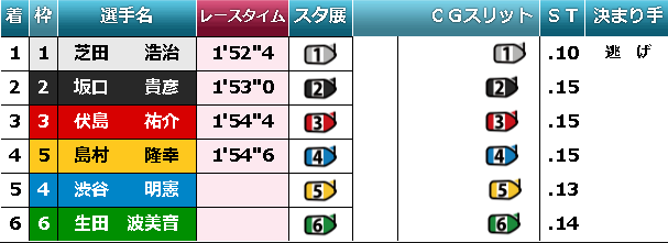 今節の最後の最後だけ、生田選手は.14というまともなスタートタイミングで締めくくっているのだ。隣の5号艇より.01遅いとはいえ、センター勢よりも舳先一つ抜きん出ているのである。スタートに対して我慢に我慢を重ねてきた生田選手が「まぁ、最後だし、いいか、ね?」と心中でボソッと呟いて、真っ当なスタートを披露したのではないか。今までの.25といったスタートタイミングは全て芝居だったんだけれども、最後の最後で我慢が利かなくなり、ボロが出たのではないか。そう思う人がいても不思議ない程度に、今までとは一味違ったスタートであった。