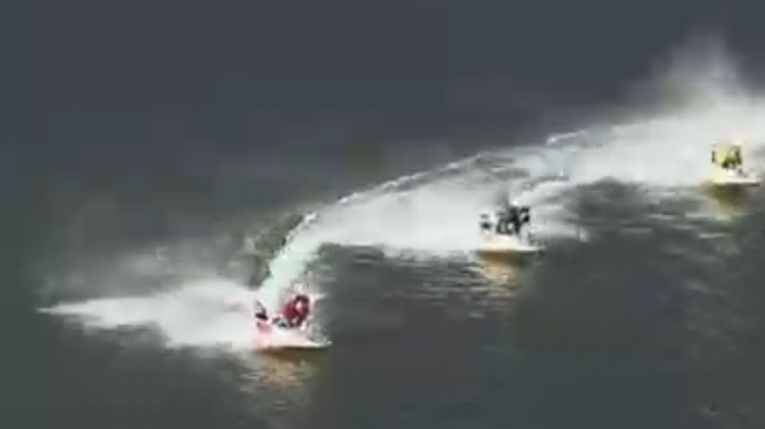 こうなると引き波も遠のいていくから、本来は最もターンマークに近かった筈の1号艇生田選手が大いに盛り返してくることとなる。小回り旋回で3、5、6号艇より先取って向こう正面へ入ると、既に大外を進んでいた2号艇とはほぼ並走のかたちとなった。