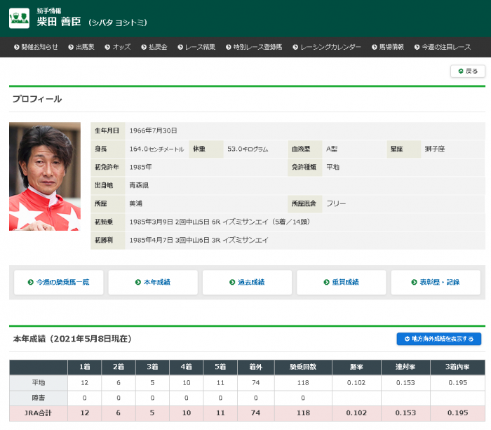 緊急事態が続く世間の停滞などどこ吹く風、復活の好調を維持して久しいJRA最高齢騎手の柴田善臣氏(54歳/東/フリー)がまた勝った。これで地方競馬を含めると今年13勝。ここまでの年間勝率も一割台に乗せ、このまま好調を維持すれば、2011年に83勝して以来、実に10年ぶりの勝率一割達成となる。そうなれば、全盛期に迫る、とまでは述べがたいものの、少なくとも通算成績と遜色ない程には成績が回復してきたということを、内外に広く強く印象付けることとなり、騎乗馬の数も質も充実一途の好循環、益々の活躍に繋がることであろう。