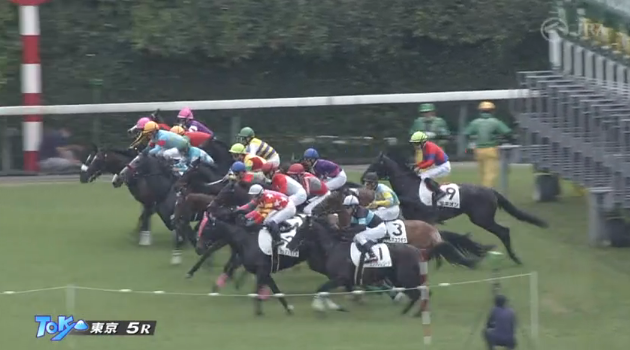 新緑を大風が激しく揺するという少し不安定な大気に翻弄されて、2021年の五月晴れは、目まぐるしく流転する濃淡様々な雲模様を伴い、疫病不安に喘ぐ人々の心をさらにふらつかせる。そんな5月8日の土曜日に、今日も今日とて東京競馬場では無観客開催があった。人気のないフードコートが、ただただそこにある、不可思議な昼休憩時間を経た後の第5Rは、未勝利クラスの芝1600m戦であった。