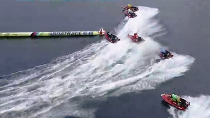 十四万舟が叩き出された当時もそうだが、本当に、事実は小説よりも奇なるものであって、ボートレースは何が起こるかわからないし、なんだって起こり得る。発走から早速、嵐の予感が舟券師たちの脳裏に走った。ピット離れで二号艇のA1選手が後手を踏んだのである。