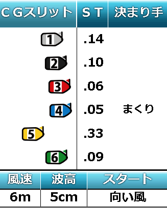 本走は安定板を付けさせられての勝負となっている。その場合の定説として、荒れにくく内側の艇からキッチリ決まる、ということがよく言われるが、その説を信望する舟券師たちが多いのか、一番人気は1-2-4、二番人気が2-4-6で、何れも生田選手アタマの舟券ではないものとなった。しかし1着にはならないとしても、生田選手がなんらかのかたちで舟券には絡むのではないか、と勘繰る舟券ファンは多かったようで、それは上述人気の二三着に生田選手の四号艇が指名されていたことからも察せられる。