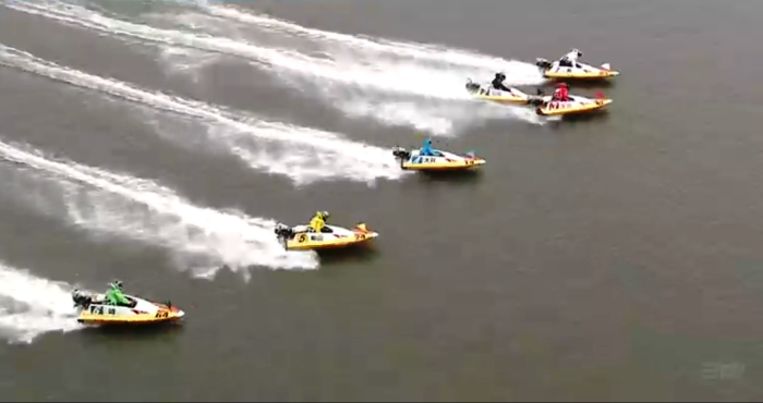<そのまま綺麗なツケマイ。見事に自身の引き波へと一号艇を陥れた>